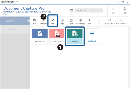 2編集したいジョブのアイコンをクリックして、[編集]をクリックします。