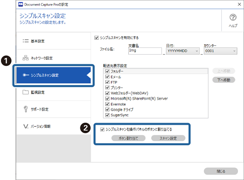 3スキャナーの操作パネル(ボタン)から実行したいシンプルスキャン設定を、プルダウンメニューから選択します。