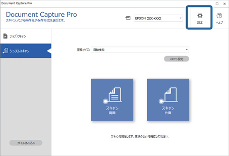 1Document Capture Proのトップ画面で[設定]をクリックします。