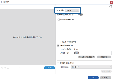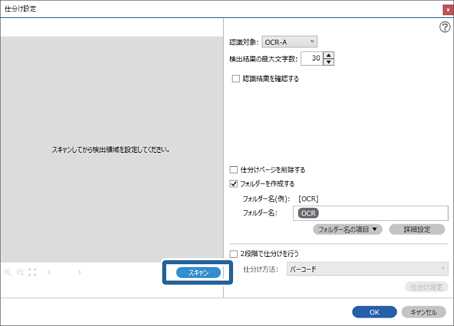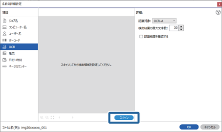 9OCR の検出領域を指定するために、スキャナーに原稿をセットしてから[スキャン]をクリックします。