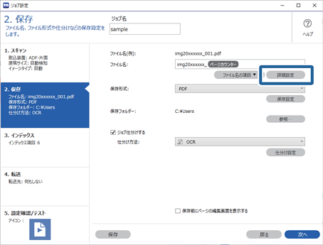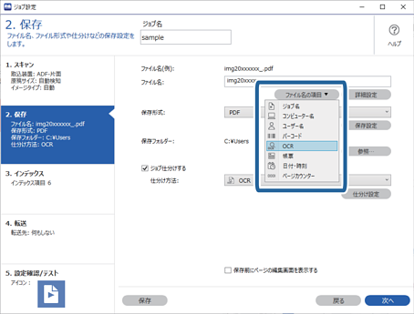 ここでは、「ファイル名にOCRの文字を使用して保存する」というジョブの設定方法を説明します。
