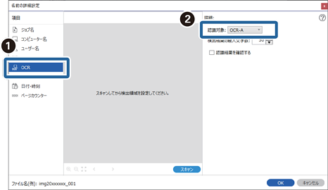 [ファイル名の項目]から[OCR]を選択するためには、[詳細設定]で設定をしてから選択してください。