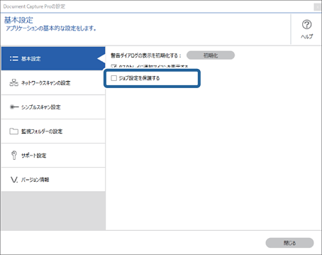 2[基本設定]タブをクリックし、[ジョブ設定を保護する]にチェックを入れます。