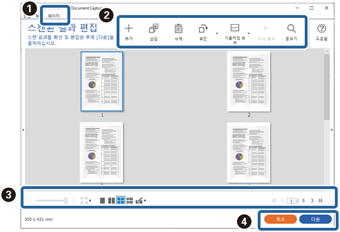 이미지 방향 수정, 페이지 추가/삽입/순서 변경을 수행할 수 있습니다.