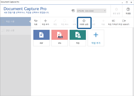 1작업 설정(작업 스캔 화면에서)를 클릭합니다.