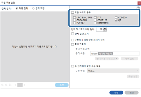 개별 바코드 유형을 선택하려면 모든 바코드 종류를 해제합니다.