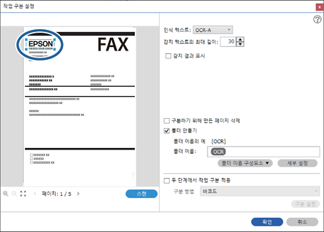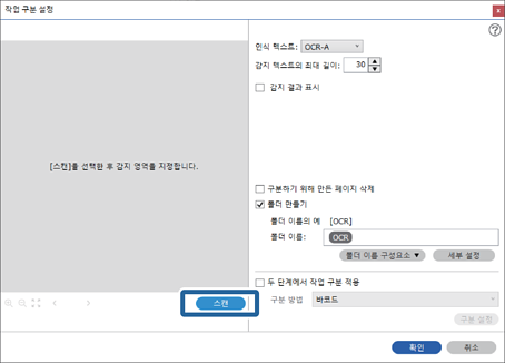 2작업 구분 적용을 선택하고 구분 방법를 OCR로 설정한 후에 구분 설정를 클릭합니다.