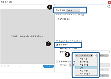 이 섹션에서는 “OCR로 읽은 텍스트를 이용해서 폴더 생성 및 저장”에 대한 작업 설정을 설명합니다.