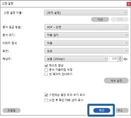5확인(스캔 설정상단 화면에서)를 클릭합니다.