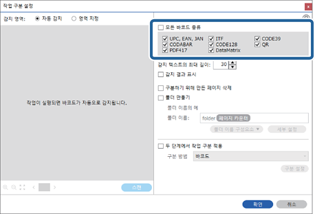 개별 바코드 유형을 선택하려면 모든 바코드 종류를 해제합니다.