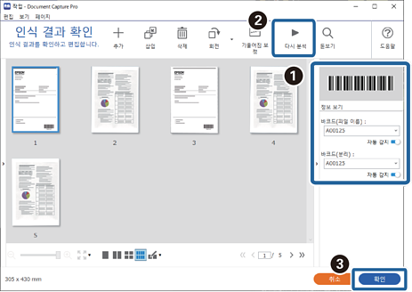 바코드가 있는 페이지를 저장할 필요가 없다면 구분하기 위해 만든 페이지 삭제를 선택합니다. 그 후 데이터가 저장되기 전에 바코드가 포함된 페이지가 삭제됩니다.