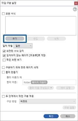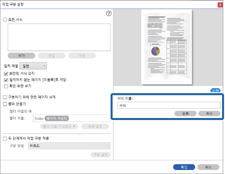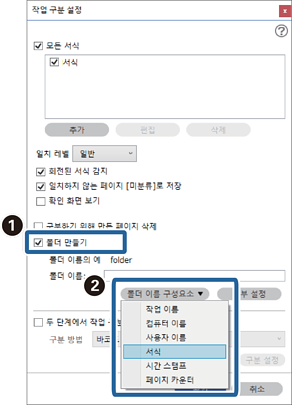 이 섹션에서는 “양식 유형을 폴더 이름으로 사용해서 양식별로 구분하고 저장하기”에 대한 작업 설정을 설명합니다.