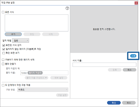 5스캔 설정 화면에서 스캔 설정을 지정하고 확인를 클릭합니다.