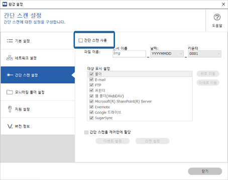 2간단 스캔 설정 탭을 클릭한 후에 간단 스캔 사용을 해제합니다.