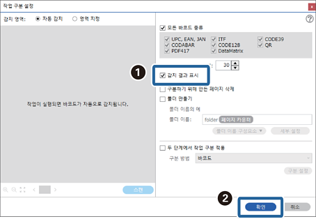 7감지 결과 표시(구분 설정 화면에서)을 클릭한 후에 확인를 클릭합니다.