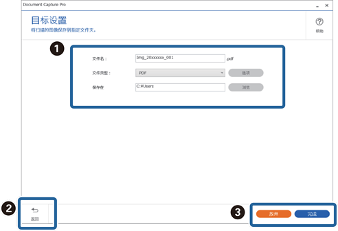 选择目的地后,您可在此屏幕上进行详细设置,例如要保存的文件名或文件类型。