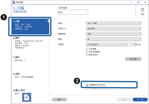 3单击 1.扫描 选项卡,然后选择 扫描的同时显示预览。