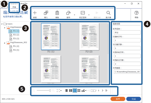 您可以矫正图像方向、添加/插入/更改页面顺序,以及检查/矫正要创建的文件结构。