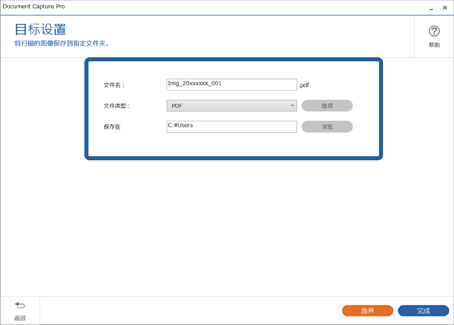 5在 目标设置 屏幕上设置您希望保存的文件和保存格式。您还可依据目的地进行更多详细设置。
