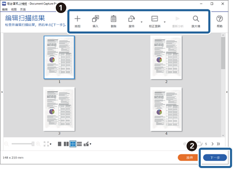 3在 编辑扫描结果 屏幕上检查扫描结果,进行必要的编辑,然后单击 下一步。