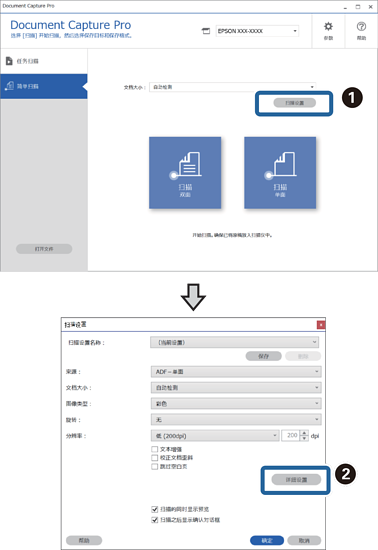 您可以使用下列方式从 Document Capture Pro 载入 EPSON Scan/Epson Scan 2。