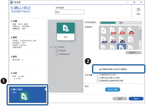 3单击 5.确认/测试 选项卡,然后选择 禁用操作面板上的任务设置更改。
