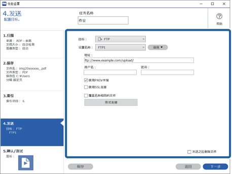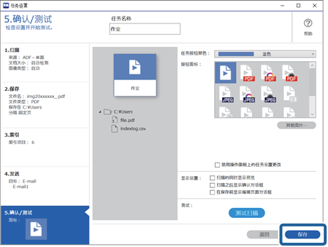 8检查 5.确认/测试 选项卡上的设置,然后执行测试扫描。