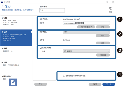 完成扫描设置后,单击 下一步 或 2.保存 选项卡。