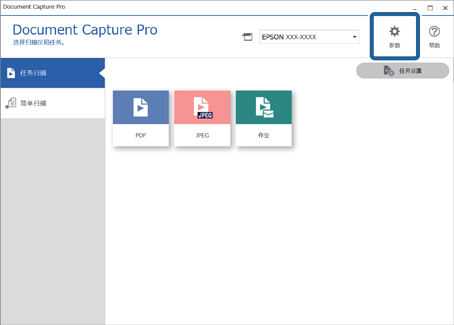 若要显示偏好屏幕,请单击 Document Capture Pro 顶层屏幕上的 参数。