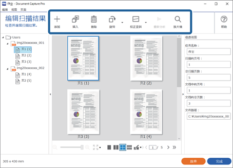 4对于已在扫描设置中为其选择 在保存前显示编辑页面对话框 的任务,扫描后在 编辑扫描结果 屏幕上检查扫描结果,然后进行必要的编辑。