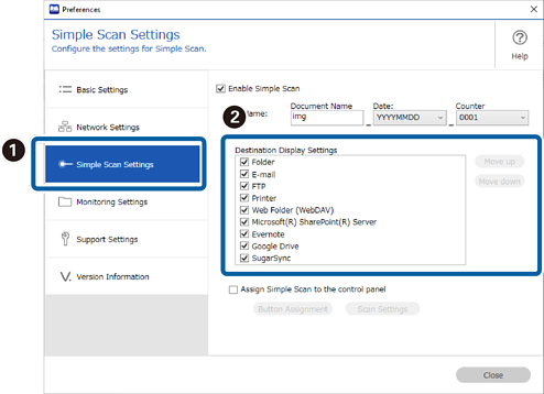 2Klicken Sie auf Einfacher-Scan-Einstellungen, und deaktivieren Sie dann Ziele, die Sie nicht anzeigen möchten, in Zielanzeigeeinstellungen.