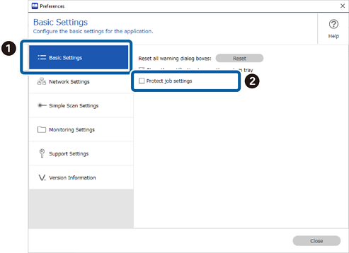 2Klicken Sie auf die Registerkarte Basiseinstellungen, und wählen Sie dann auf dem Bedienfeld Auftragseinstellungen schützen.