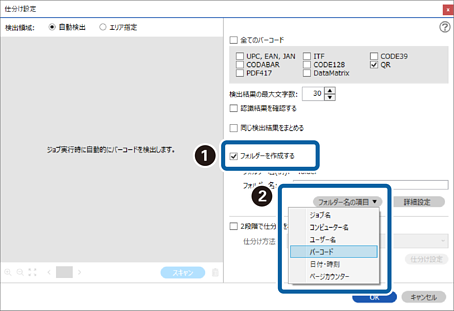 ここでは、「1つ目のバーコード情報でフォルダーを作成し、その下の階層に2つ目のバーコード情報でフォルダーを作成する」というジョブの設定方法を説明します。