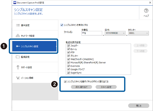 3スキャナーの操作パネル(ボタン)から実行したいシンプルスキャン設定を、プルダウンメニューから選択します。