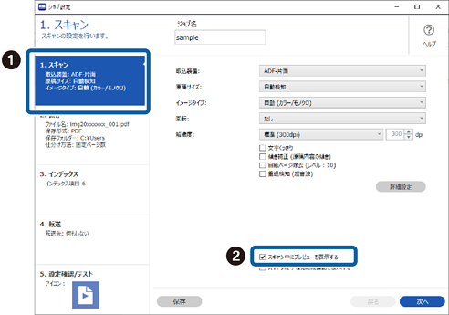 3[1. スキャン]タブで[スキャン中にプレビューを表示する]にチェックを入れます。