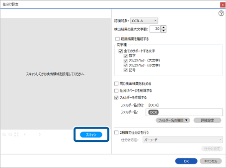 9OCRの検出領域を指定するために、スキャナーに原稿をセットしてから[スキャン]をクリックします。