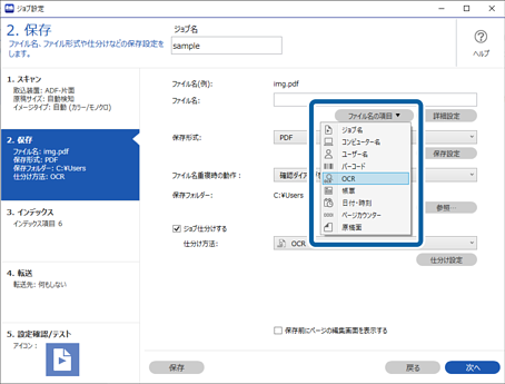 12[ファイル名の項目]から[OCR]を選択します。