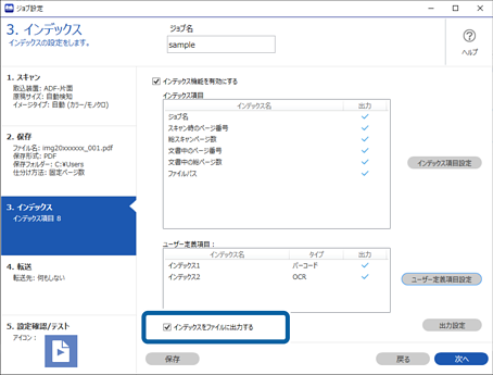 バーコードやOCRを元にユーザー定義インデックスを設定し、インデックスデータとして出力することができます。