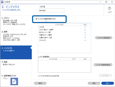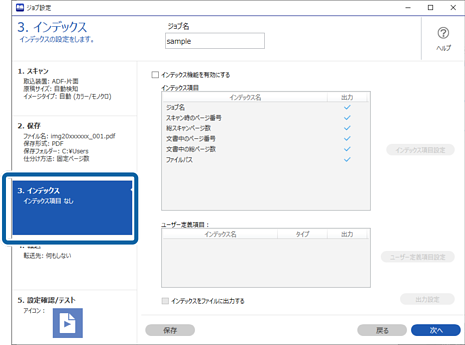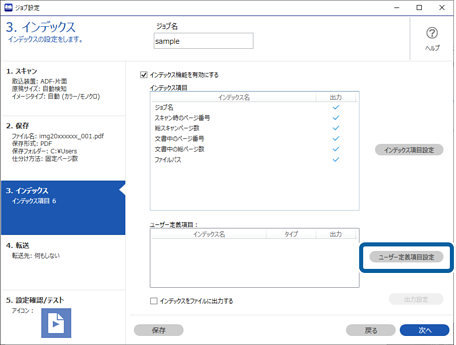 ここでは、「ユーザー定義インデックスを新規作成して、インデックスファイルに出力する」というジョブの設定方法を説明します。