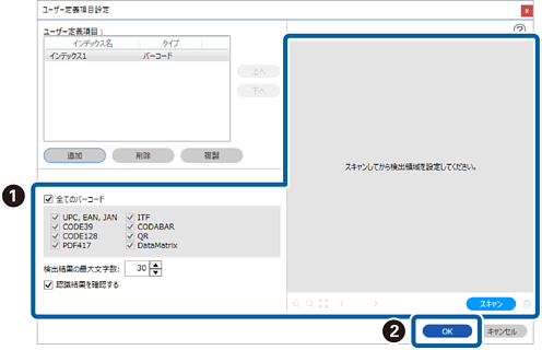 <バーコードを使ってユーザー定義インデックスを作成する場合>