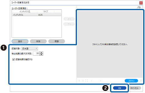 <OCRを使ってユーザー定義インデックスを作成する場合>