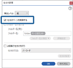4[仕分け設定] 画面で、[仕分けページを削除する]にチェックを入れます。