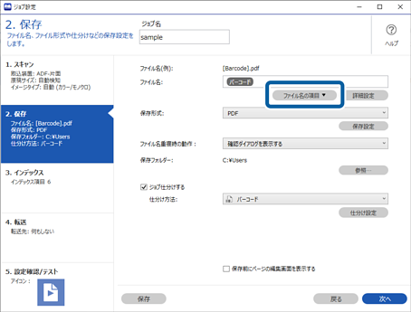 ファイル名に使うバーコード/OCRの認識結果画面を表示させる設定は、以上で終了です。