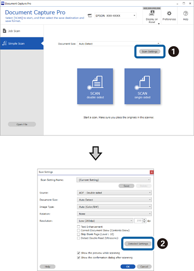 يمكنك استخدام الأساليب التالية لتحميل EPSON Scan/Epson Scan 2 من Document Capture Pro.