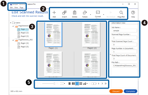 Vous pouvez corriger l’orientation de l’image, ajouter/insérer/réorganiser l’ordre des pages et vérifier/corriger la structure de fichier à créer.