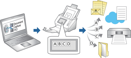 Vous pouvez enregistrer les images numérisées telles quelles, et trier automatiquement les données numérisées et enregistrer les fichiers à l’aide d’informations de code à barres, etc. Les noms de fichier et les noms de dossier sont également attribués automatiquement. |