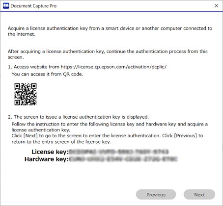 Une fois que l’activation est terminée, la clé d’activation s’affiche. Saisissez cette clé d’activation sur l’écran d’activation qui s’affiche sur l’ordinateur sur lequel DCP Enhanced OCR sera utilisé (l’écran affiché à l’étape 5).