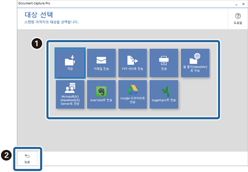 이 화면에서 스캔된 이미지의 저장할 대상을 선택할 수 있습니다.