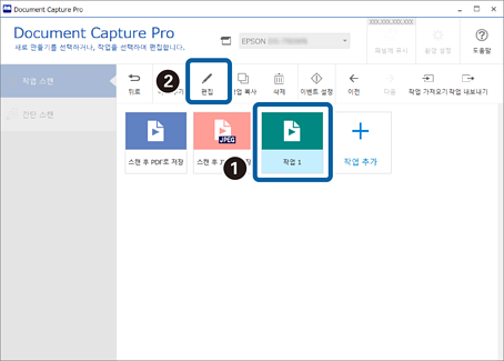 1작업 스캔 화면에서 작업 설정을 클릭하십시오.