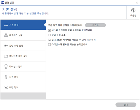 기본 설정 화면을 표시하려면 (Document Capture Pro 상단 화면에서)환경 설정을 클릭합니다.